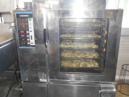 焼きとりは、鶏肉と白ねぎを焼き物機で焼いて、甘辛いたれをかけています。