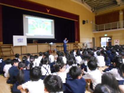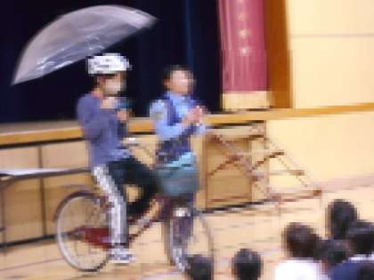 住吉警察署の方を講師に招いて交通安全教室をしました。