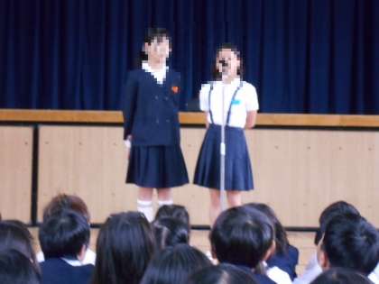 今日は、いのちについて考える日、校長からいのちを大切にのことで「いじめ」についてお話がありました。何気ない言葉からいじめにつながることがあるので、みんなもよく考えてください。とのことでした。その後、代表委員会から土曜祭の準備を始めてください。の宣言がなされました。