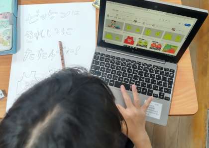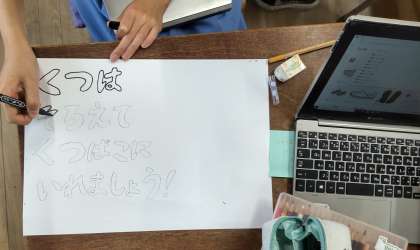 運動委員会では、みんなが休み時間や体育で使用する用具類、靴箱の整理整頓を啓発するポスターを作っていました。みんなのために、頑張っています。