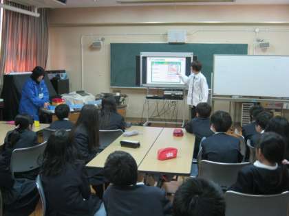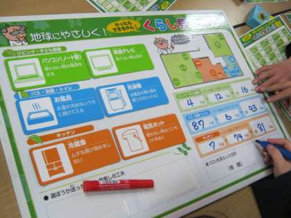 2月4日、大阪ガスのみなさんをゲストティーチャーに迎えて、5年生は環境学習に取り組みました。身の回りの生活の中で、省エネや二酸化炭素を削減できる方法を教えていただきました。
