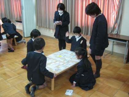2月5日、20分休みに2年生のかるた大会をしました。今日も児童会の子どもたちが準備したり、ふだを読んだりしてくれました。