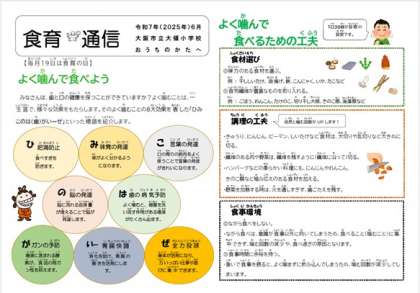 6月食育通信は「よく噛んで食べよう」をテーマに載せています。