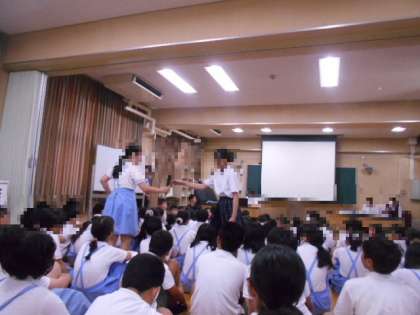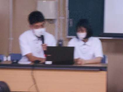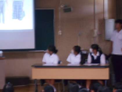 大領中学校の生徒会の生徒5名から紹介がありました。質問時間には、たくさん手が挙がり丁寧に説明してもらいました。