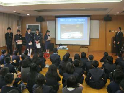 2月29日、6年生は大領中学校へ行き、見学と部活動体験をさせていただきました。最初に生徒会のみなさんから、中学校の様子をきかせていただきました。そのあと、希望したクラブを見学しました。どのクラブでも中学生に親切に教えていただきました。