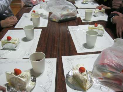 3月7日、5・6時間目に6年生の卒業茶話会がありました。ケーキやお菓子をいただきながら、各クラスの劇を見ました。楽しい時間を過ごし、卒業前の思い出がまた一つできました。