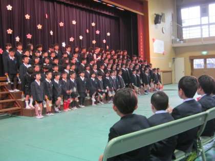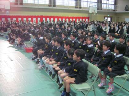 4月7日、平成28年度、第57回入学式を行いました。78名の1年生が入学しました。2年生の歓迎の歌やよびかけを一生懸命みていました。明日から元気いっぱいで登校しましょうね。