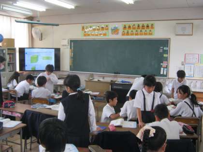 5月10日3時間目、5年生は各クラスで学習に取り組んでいました。1組は算数科で教えあい学習、2組は国語科の説明文、3組は理科の実験です。新しいクラスにもすっかりなれて、先生の話がしっかり聞けていました。