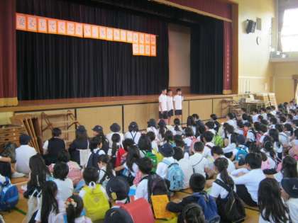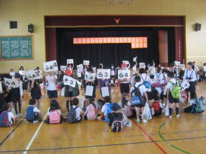 5月21日、土曜授業は「大領祭」。子どもたちがこの日に備えて、計画・準備をしていました。たてわり班で集まって開会式をした後、いよいよお店をまわります。
