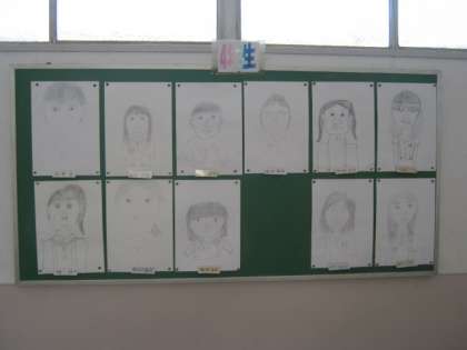 4年生は、鏡を見て自画像を描きました。6年生はさすがです。