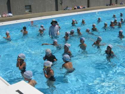 8月31日3時間目、楽しかったプール水泳の授業も今週でおしまいです。1年生は6月とは見違えるほどたくましくなり、水の感触を楽しんでいました。