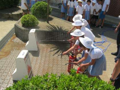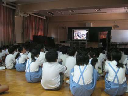 9月2日(金)4年生は、防災訓練をしました。まずは、DVDを見て地震や津波がおきた時の避難の仕方等を学習しました。次に、講堂前でけむり体験と消火体験をしました。どの児童もしっかりと話を聞いて活動していました。