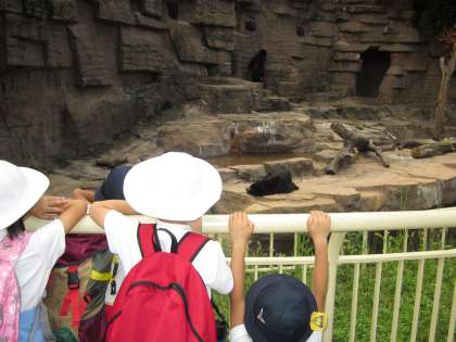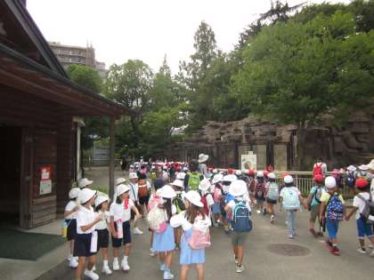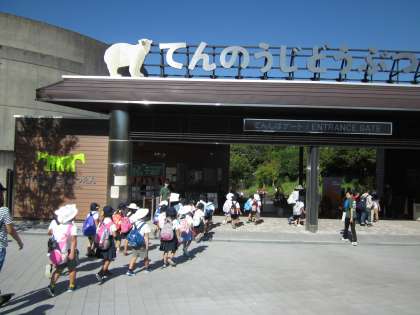 10月7日(金)1年生は、天王寺動物園へ行きました。「ライオンの顔がすごかった。」「コアラが見えたよ。」と話す子どもたちは、とてもうれしそうでした。お弁当もみんなで仲良く食べました。電車の中もマナーを守った乗り方ができました。