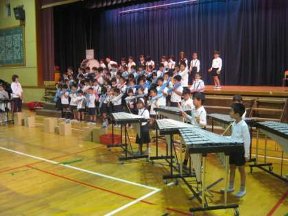 10月27日4時間目、1年生が学習発表会の練習をしていました。なかなか難しい合奏に挑戦しています。当日をおたのしみに。