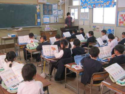 1月30日5時間目、1年生は3クラスとも音楽の時間でした。歌や鍵盤ハーモニカを一生懸命練習していました。