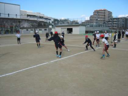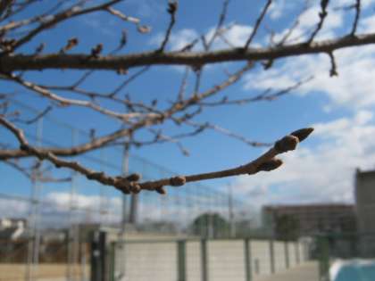 2月3日4時間目、4年1組はやわらかな陽ざしの中で体育の学習をしていました。桜は2か月後に向けてスタンバイ。今日は節分、明日は立春です。