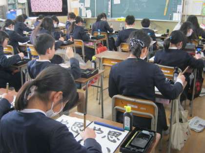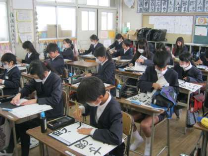 2月8日3時間目、6年1組は書写の学習をしていました。お手本をしっかり見ながら集中して書いていました。