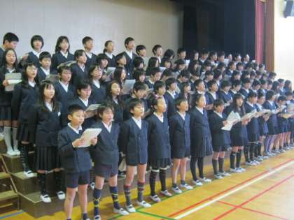3月8日5時間目、講堂へ行くと、6年生が卒業式の練習をしていました。まだ台本を見ながらですが、一生懸命がんばっています。
