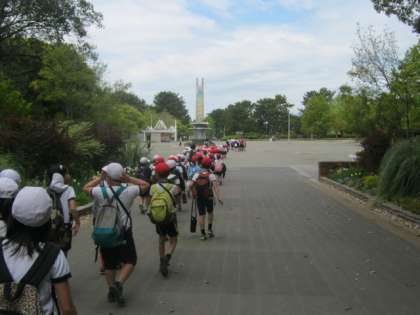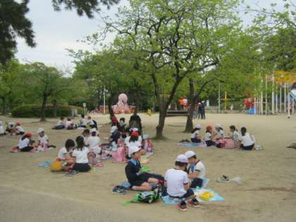 4月25日(火)4年生は服部緑地公園へ行きました。公園ではグループごとにオリエンテーリングを行いました。ポイントでは、お題をクリアするとシールがもらえます。どのグループも力を合わせて取り組むことができました。お弁当を食べた後は、遊具で思い切り遊びました。くたくたになって、帰りの電車でうとうとする子もいました。