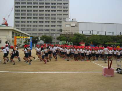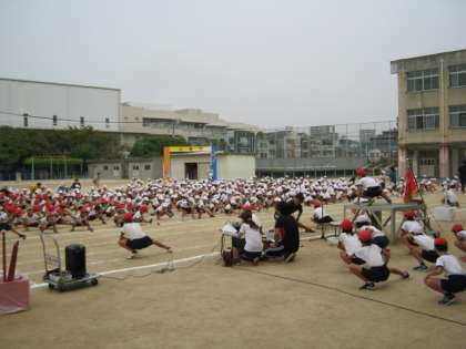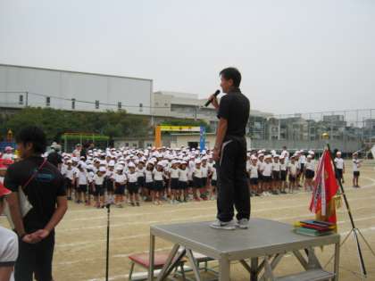 最後に、「大領準備運動」「退場の仕方」の練習です。準備運動、退場のかけ足どちらもしっかりできました。校長先生からは「とまっている時と動いている時のメリハリをつけるともっとよくなるよ。」とアドバイスをしてもらいました。