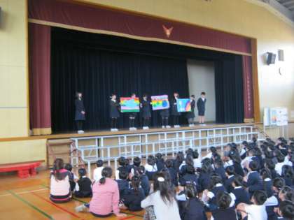 6年生は8〜9日に広島方面へ修学旅行へ行きます。6年生は、みんなに折ってもらった折り鶴を3つの作品に仕上げて、修学旅行にもっていきます。6日(月)の児童朝会ではその作品を紹介してくれました。また、大領小学校の代表として平和学習に取り組んでくることも伝えてくれました。よい修学旅行になることを願っています。