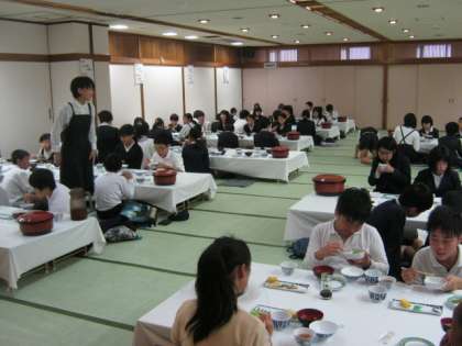 上 朝食の時間です。いただきます!!