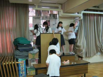 明日、5月24日は土曜授業で「大領祭」を行います。今日は6時間目に準備をしました。まだ準備だというのに子どもたちはうきうきしています。「企業秘密なので今日は見せられません。」と言いながら楽しそうに用意していました。