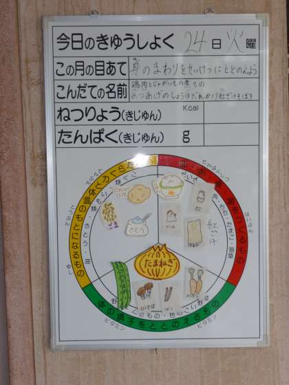 毎日、給食委員会の児童が書いて食品のカードをはってくれています。