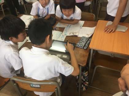 6/20、6年3組でICTを活用した道徳の授業研究を行いました。大阪市教育センターから講師も招聘し、教員の授業力向上を目指しました。子ども達は自分の意見をしっかりと持ち、グループ討議ができました。