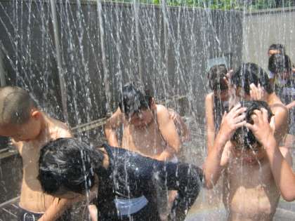 6月25日(月)から、地震の影響で延期していたプール水泳の学習を始めました。子どもたちは楽しくプールの学習をしています。低学年は、水遊び・ふし浮きなど、高学年はクロールなど、それぞれの目標を持ってがんばっています。暑い日はシャワーがとても気持ち良さそう。広いプールで楽しく活動しています。