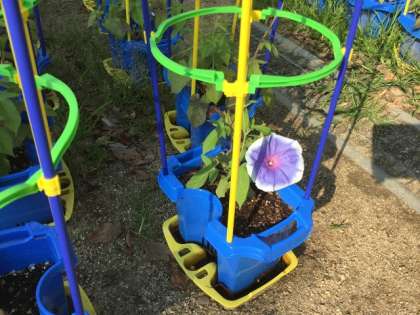 毎朝、せっせと水やりに出かける1年生のほほえましい姿が見られます。みんなの優しい心が、朝顔にも届いたのでしょう。初夏の嬉しい知らせが届きました。朝日を浴びて、今、朝顔が、次々と美しい花を咲かせています。子どもたちの「朝顔咲いたよ」の声に耳を傾けてみてください。