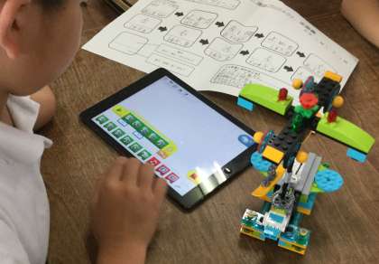 5年生は、レゴを使ったプログラミング学習を行っています。