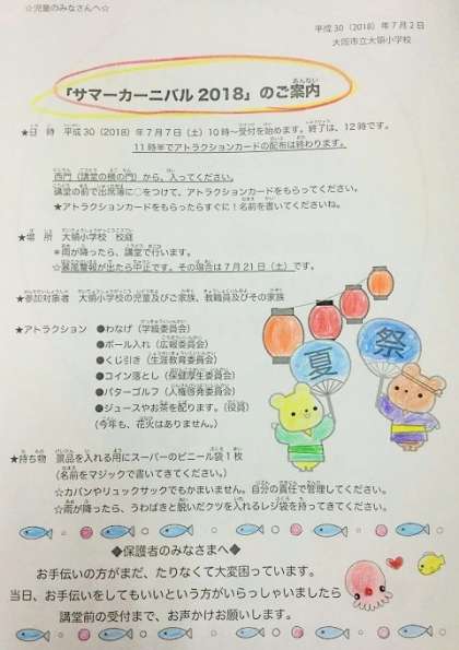 子どもたちが楽しみにしているサマーカーニバルが週末にあります。