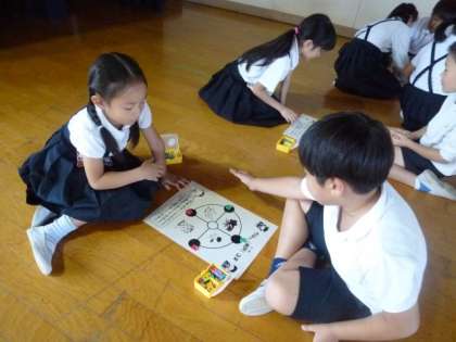 10月9日(火)に、民族講師をお招きして、2年生と5年生の課内実践の授業を行いました。5年生は校外学習鵜で行くコリアンタウンの学習を行いました。2年生は韓国・朝鮮の遊びをみんなで楽しみました。写真は2年生の実践の様子です。