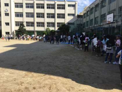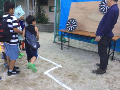 秋晴れのもと、今年もふれあいフェスタが行われました。盛況で大勢の子どもたちがアトラクションを楽しみました。受付でアトラクションカードをもらって、いろんなコーナーを回ります。