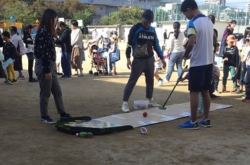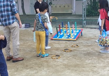ゲートボールやわなげなど、ゲームのアトラクションやレザークラフトやハロウィンペンダントなど手作りのアトラクションがありました。子どもたちは、もらった景品やできあがった作品などを大事そうに持っていました。