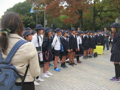 上 原爆の子の像の前で、平和のセレモニーを行いました。