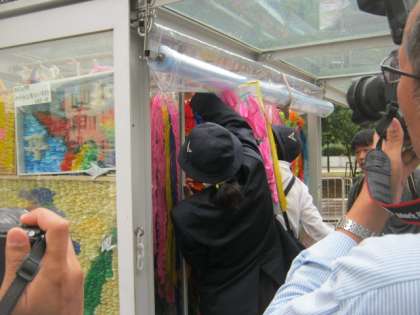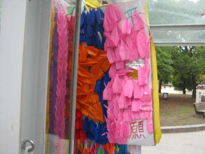 下 みんなの思いがこもった折鶴を、無事に届けることができました。