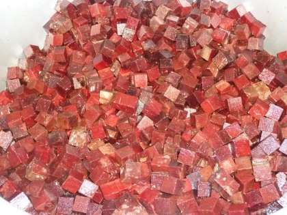 大阪市では年に1回、調査捕鯨のくじらを使ったくじらの料理が今も給食に出されています。真っ赤なくじらの身を見てください。これを今年は11月22日(木)に、「くじらの竜田揚げ」にして食べました。子どもたちは、カリッとした歯ごたえのくじらをとてもおいしそうに食べていました。