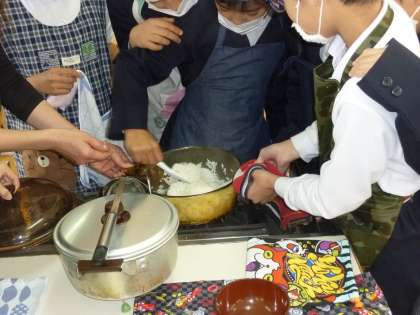 12月5日(水)から10日(月)にかけて、5年生は、ごはんとお味噌汁を作りました。どのクラスもけがなく上手に包丁を使って調理できました。味付けにこだわり、みそ汁も味見を何度もしながら味の調整を行っていました。お家でも、やってくれることを楽しみにしていてください。