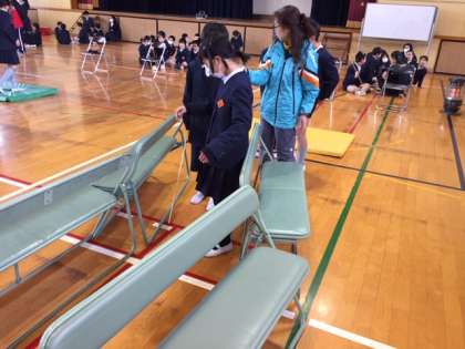 街の中には様々な障がい物があります。それらをうまくよけて、相手を安全に案内するのは難しい。相手を思いやる心が大切なことを実感できる体験になりました。
