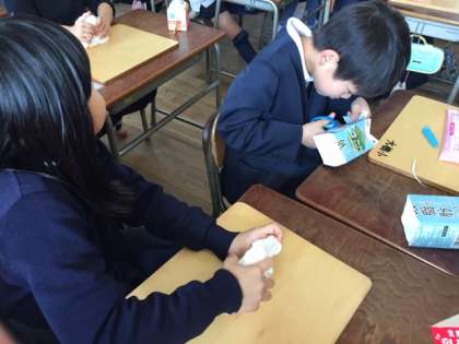 3年生は、1組が粘土でものづくり、2組は理科の学習を行いました。真剣な表情でがんばっていました。