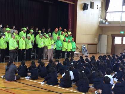 地域の皆さま、PTAの皆さまが足元の悪い中を朝早くから多数集まってくださいました。雨の日も、風の日も、雪の日も、夏の暑い日差しの中でも、いつも子どもたちを見守ってくださり、一年間ありがとうございました。おかげをもちまして、子どもたちは健やかに日々の学校生活を送ることができました。