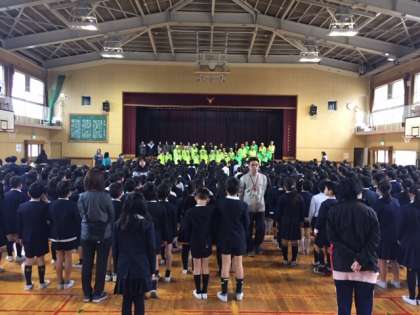3月4日(月)の全校朝会の時間に、講堂で子ども見守り隊の皆さまへの「お礼の会」を開きました。