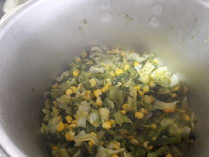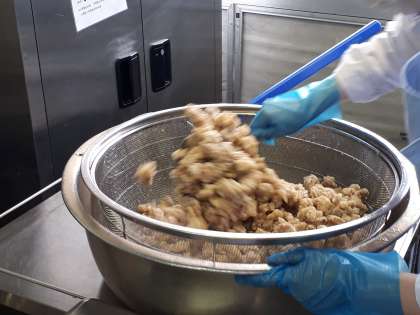 フライドチキン、カレーシチュー、春のカラフルソテーの調理の様子です。