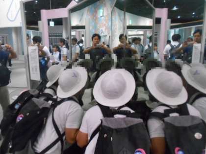 二人が六人に分身、昼食後は、プラネタリウム見学50分間で星空の仕組み、動きを学びました。太陽と月のことも