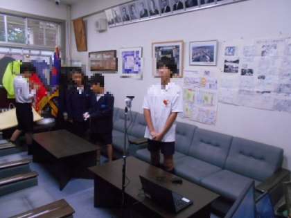 後期代表委員一人ひとりが自分の抱負を述べました。児童のみんなは、テレビ画面を通して見聞きしました。