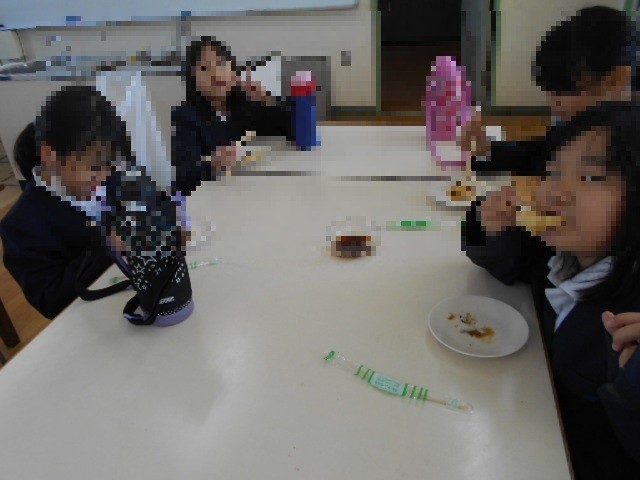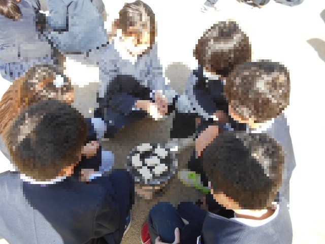 社会科の昔の道具を使う学習で、お餅を炭焼きにして食べました。ひとつのお餅を焼くのに、手間がかかってたいへんだったけど、とても美味しかったのでは・・・