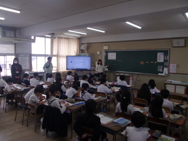 3年生は、教室でわり算の学習をしていました。