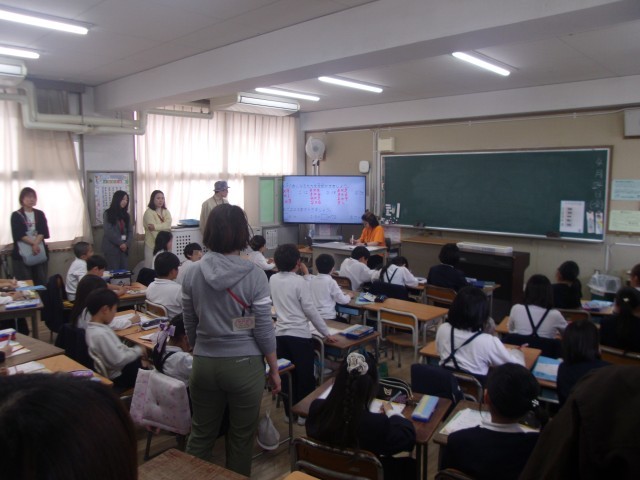 保護者の方々の熱い視線を浴びて、がんばって授業を受けることができました。